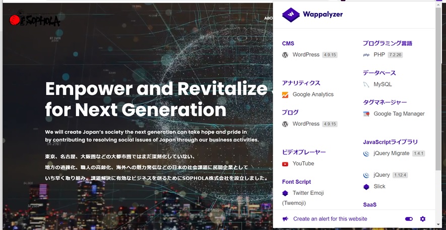 https://chrome.google.com/webstore/detail/wappalyzer/gppongmhjkpfnbhagpmjfkannfbllamg?hl=ja