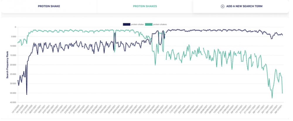 例えば、「PROTEIN SHAKE」と「PROTEIN SHAKES」、どちらのほうが検索が多いでしょうか?