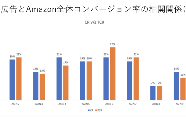 Amazon広告のコンバージョン率とAmazon全体(広告コンバージョンとオーガニック)のコンバージョン率の相関について