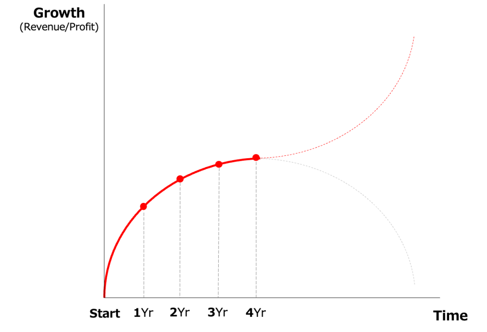 As this will be a memorable day, I hope to look back on the past four years and detail my thoughts and feelings for the fifth year. (My comment on the About Us page has also been updated, so please take a moment to read it as well!) In doing so, please also take a look at the graph below to see what kind of growth curve our company and myself have been on.