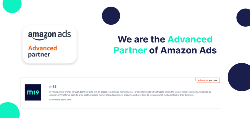 昨年10月からフランス発Amazonスポンサー広告自動最適化ソリューション:m19の国内提供を開始し、本日AmazonからAmazon Ads Verified Partner(Amazon広告の承認済みパートナー)のパートナーステータスが付与されました。これにより、承認済みパートナーバッジや、