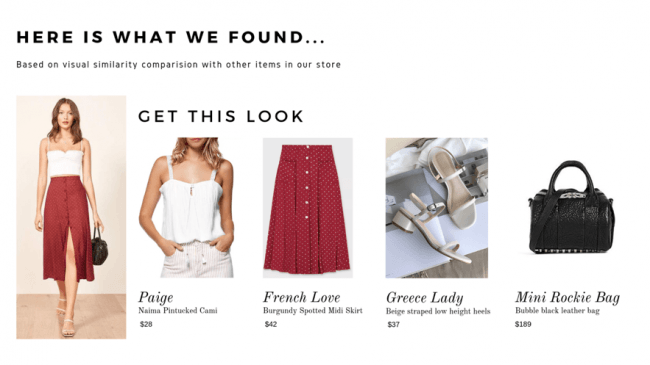 以下は活用例です。 ECの場合、Markable AIを使用すると、ユーザーは衣服やアクセサリーをスナップまたはスキャンして、完全に一致するアイテムまたは類似のアイテムを即座に確認できます。