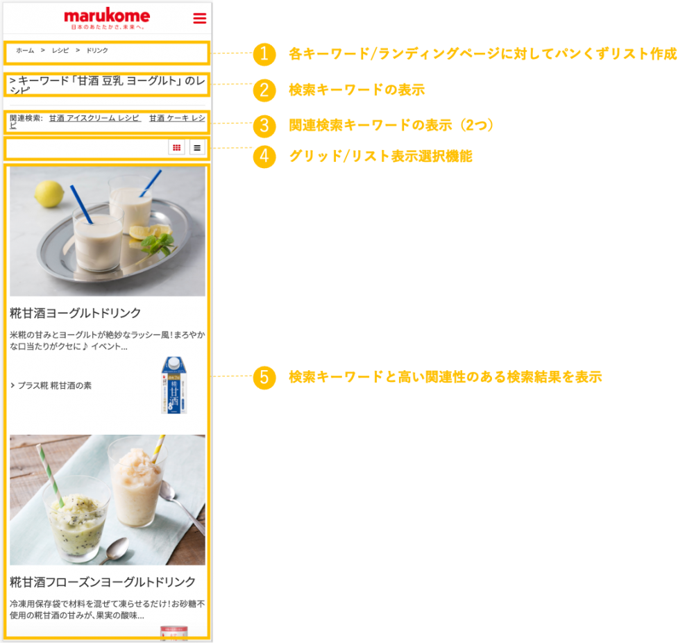 長野市で海外の最先端マーケティングテクノロジーを活用したコンサルティング・アウトソーシングサービスを提供するSOPHOLA株式会社(本社:長野県長野市、代表取締役:飯野 正紀、以下「SOPHOLA」)は、マルコメ株式会社(以下「マルコメ社」)が運営するレシピサイト(https://www.marukome.co.jp/recipe/)へLongtail UX(ロングテール・ユーエックス)のソリューション導入を本日発表いたします。ソリューション導入によって、レシピサイト上の幅広いレシピへの検索ニーズにマッチするロングテールキーワード(※1)への対応をより一層強化していきます。※1ロングテールキーワード:3〜4検索語句以上の複合的な検索キーワード。検索母数は少ない一方、検索ニーズがより明確なためニーズに合致したコンテンツを用意することで成約率(例:商品購入率や資料申し込み率)のアップやサイトコンテンツへの興味関心の醸成を図ることができる。