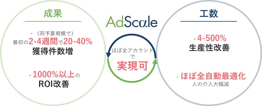 AdScale社は、同社が独自に開発した入札・予算最適化アルゴリズム、自動施策レコメンド、優れたレポート/ダッシュボード機能などにより、リスティング広告主や広告代理店の広告運用工数の大幅な削減とキャンペーンパフォーマンスの飛躍的な改善を可能とするリスティング広告自動最適化サービス「AdScale」を提供しています。現在、欧米を中心に35カ国、数千社以上の広告主に利用され、利用開始2-4週間で開始前と比較して20-40%の獲得効率改善を実現しています。